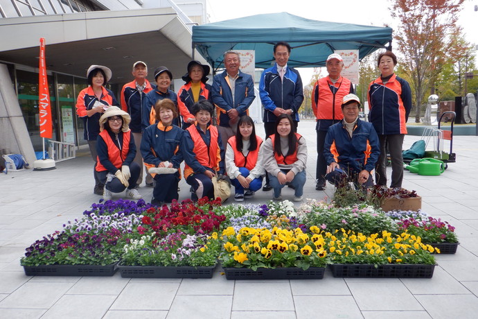 10月22日(土曜日)、2名の東京医療大学の学生さんと花いっぱい推進協議会さんにご協力いただき、西口花壇の植替えを実施しました。