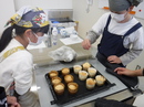 こんがり焼き上がったカップケーキにアラザンで飾り付けをしました。