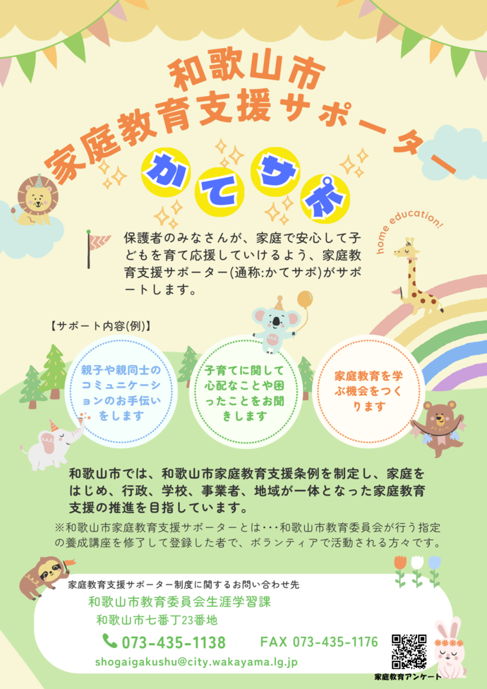 和歌山市家庭教育支援サポーター(通称:かてサポ)について