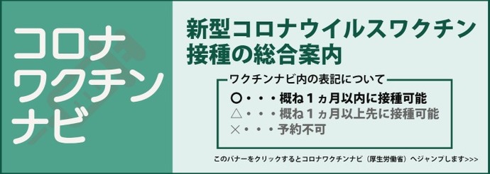 - 医療機関への接種予約の際は、下記バナーからワクチンナビへお進みいただきご活用ください。