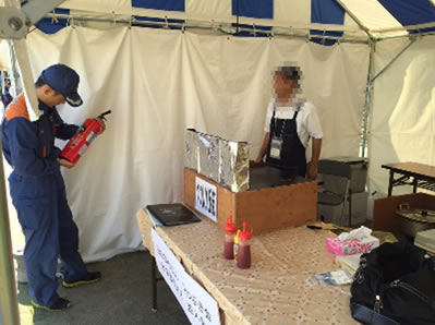 各露店を巡回して、火気等を使用する露店の消火器設置状況・使用方法や、火災発生時の対処方法を確認した。